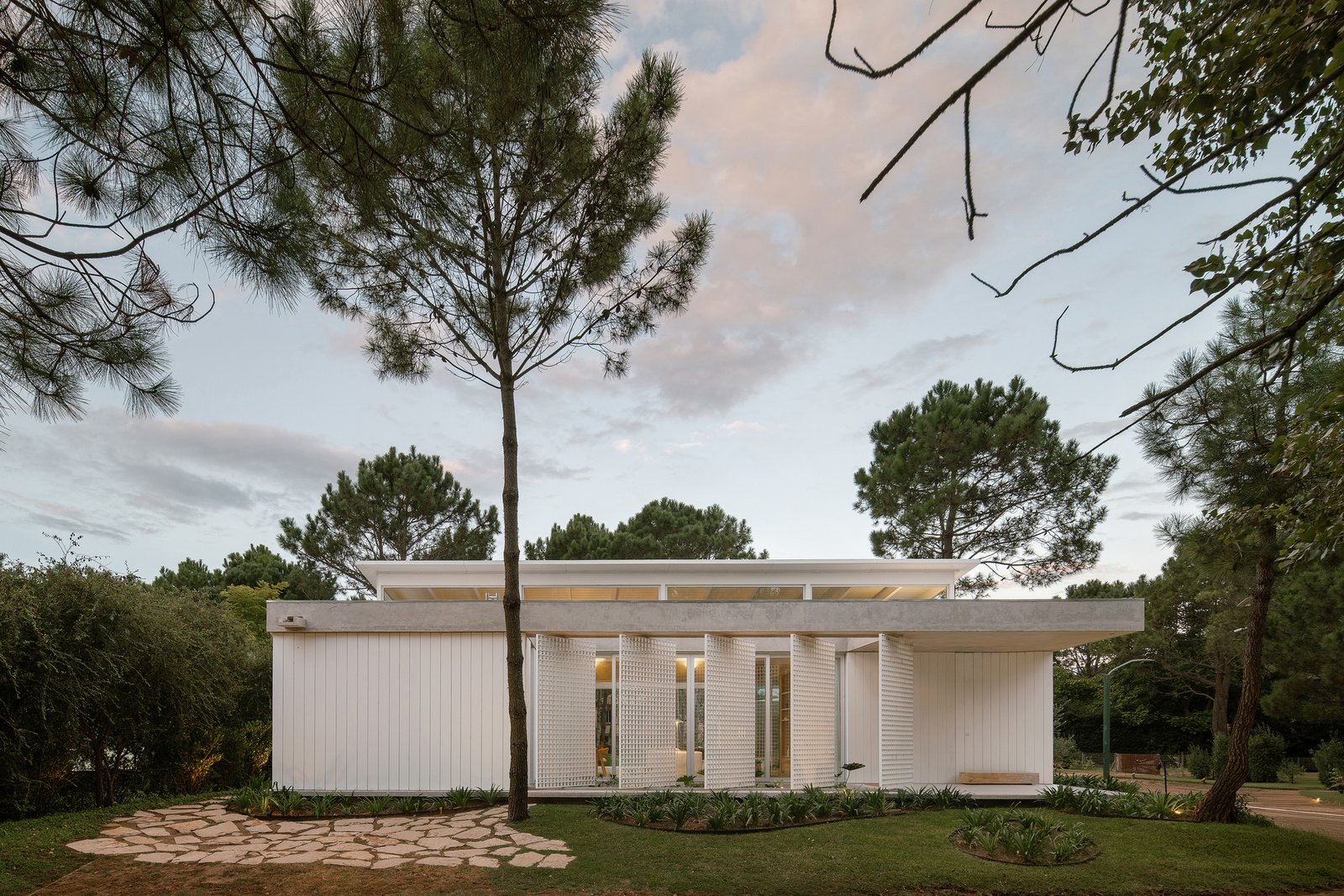 Descripción enviada por el equipo del proyecto. Implantada en un lote en esquina en el paisaje de pinos de Pinamar, esta vivienda de veraneo se concibe como un dispositivo para habitar el tiempo libre. La casa busca construir un clima de playa —relajado, luminoso y permeable— donde la vida cotidiana se expande hacia el exterior y el paisaje se incorpora de manera constante.