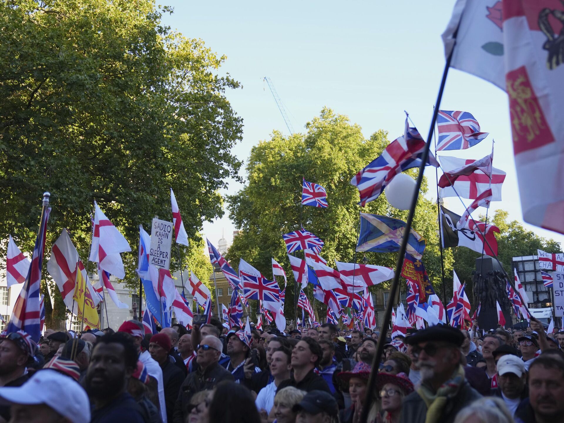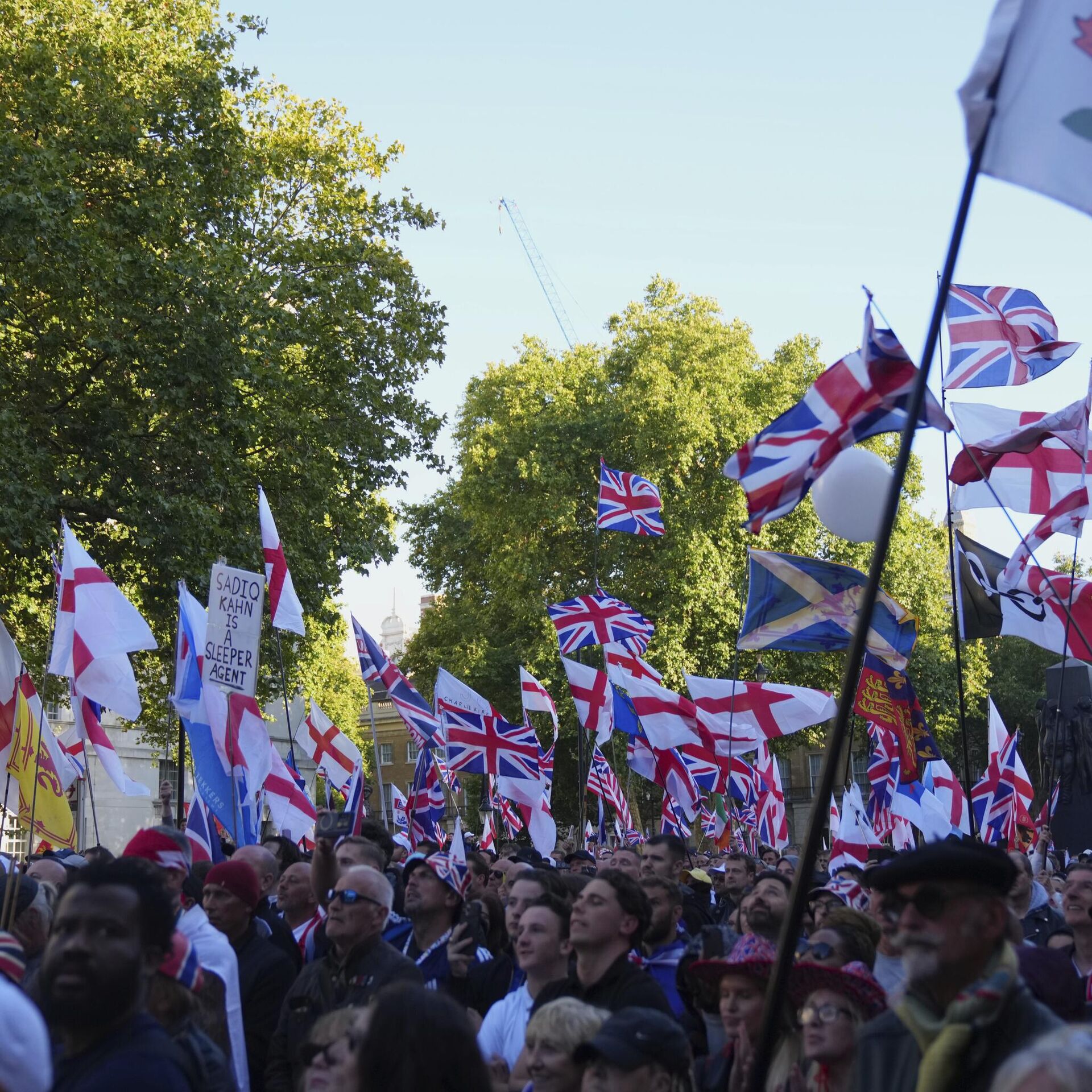 Participants in British right-wing activist Tommy Robinson’s «Unite the Kingdom» rally in London gathered on Saturday morning in Russell Square and from there headed to the government quarter of Whitehall. Many people carried the national flag of England with the cross of St. George and the Union Jack. The demonstrators shouted slogans against Prime Minister Keir Starmer. They criticize the government’s migration policy and what they see as restrictions on freedom of speech.