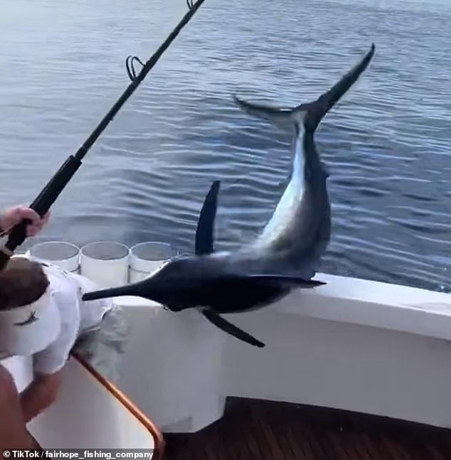 One commenter added: ‘That swordfish was literally fighting for his life! He was gonna go down swinging.’