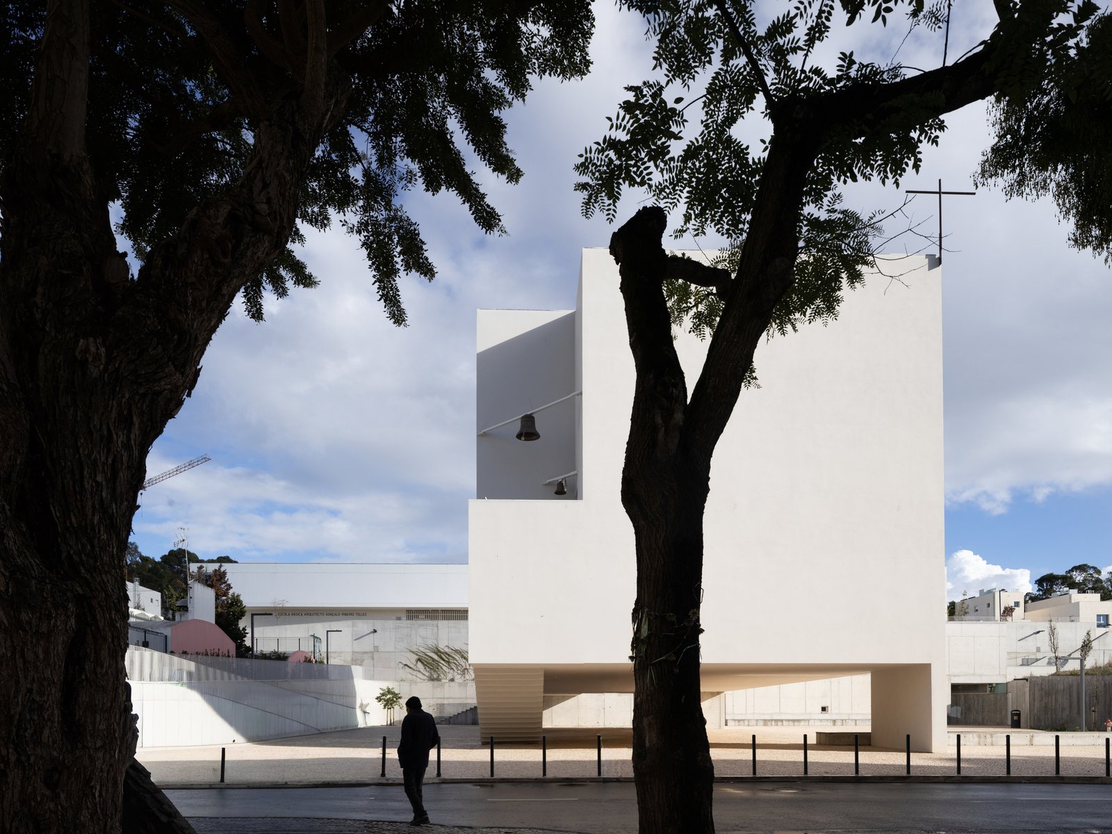 Descripción enviada por el equipo del proyecto. Al ser este lugar un punto de encuentro, da origen a la creación de una plaza pública formada por un muro que se extiende hacia el este, delimitando el espacio mediante retranqueos y salientes donde las escaleras y rampas superan el relieve irregular del terreno, cerrando el lado norte. Mediante esta única pieza, que se adapta a cada circunstancia, se define la plaza a nivel de calle y se ordenan los espacios en las plantas superiores, lo que permite la transición y, al mismo tiempo, alberga una parte importante del proyecto.