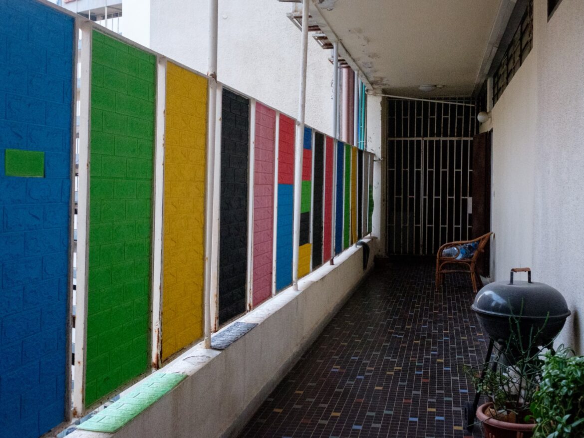 The tiles in the open corridors of the Yacoubian are a different colour on each floor – a visual way to tell residents and visitors which floor they are on. It comes in handy with elevator outages when tenants have to climb one floor after another.