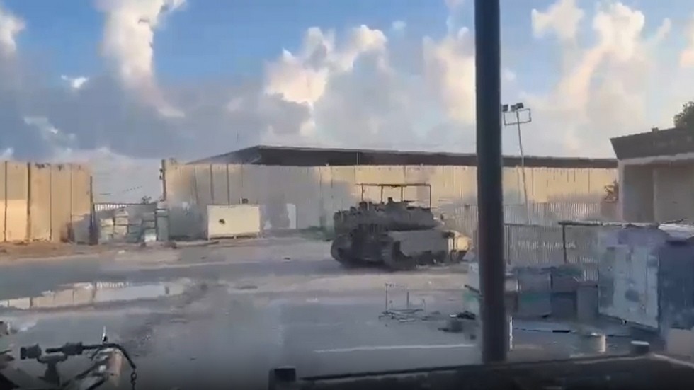 A video released by the IDF shows at least four Israeli tanks on the Gazan side of the Rafah Crossing on the border with Egypt. Part of the clip was apparently filmed by a soldier sitting on top of one of the vehicles.