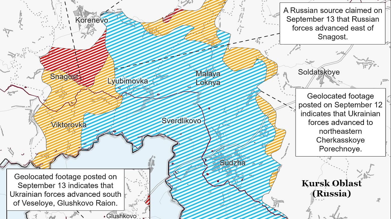 - Російські та українські війська нещодавно просунулися вперед у Курській області на тлі триваючих російських та українських атак у цьому районі 13 вересня.