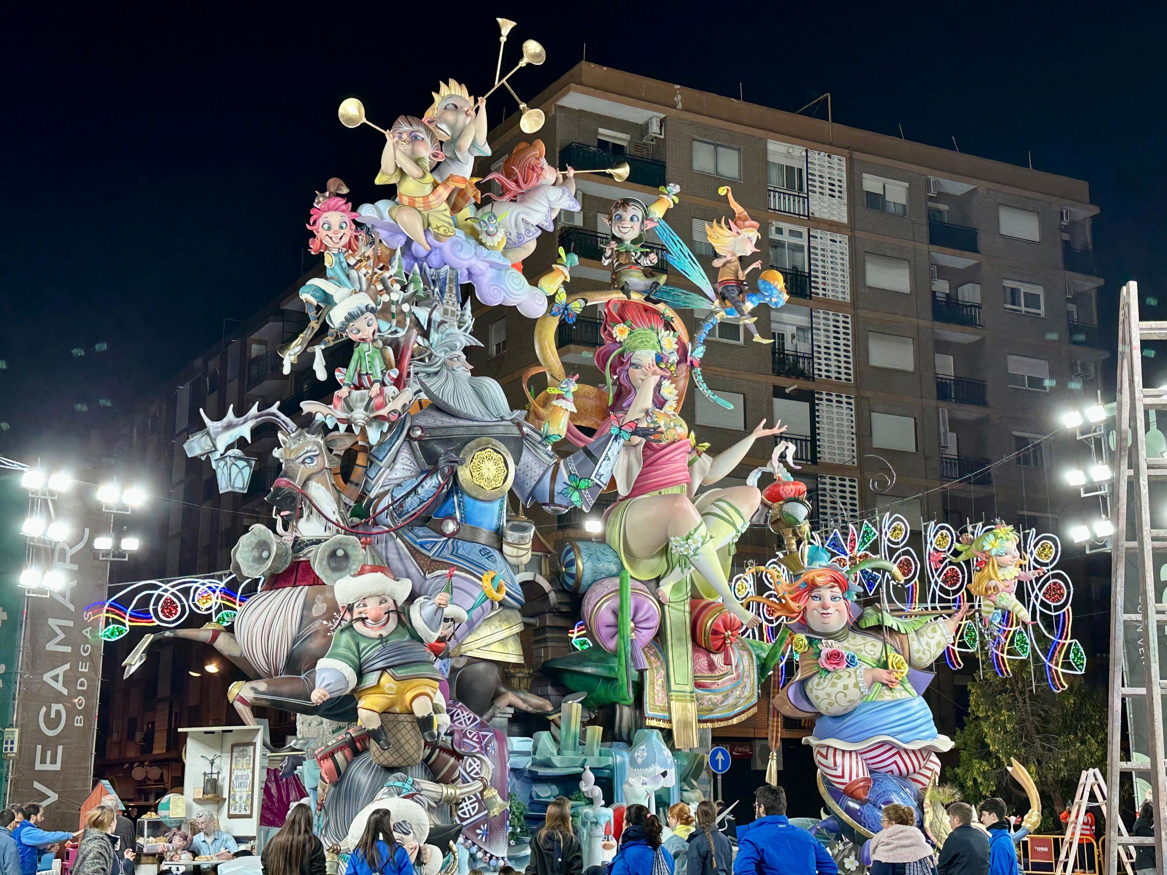 La falla, que ha contado con un presupuesto de 170.000 euros, se levanta en el mismo barrio en el que el pasado 22 de febrero 10 personas murieron en el incendio de un edificio.
