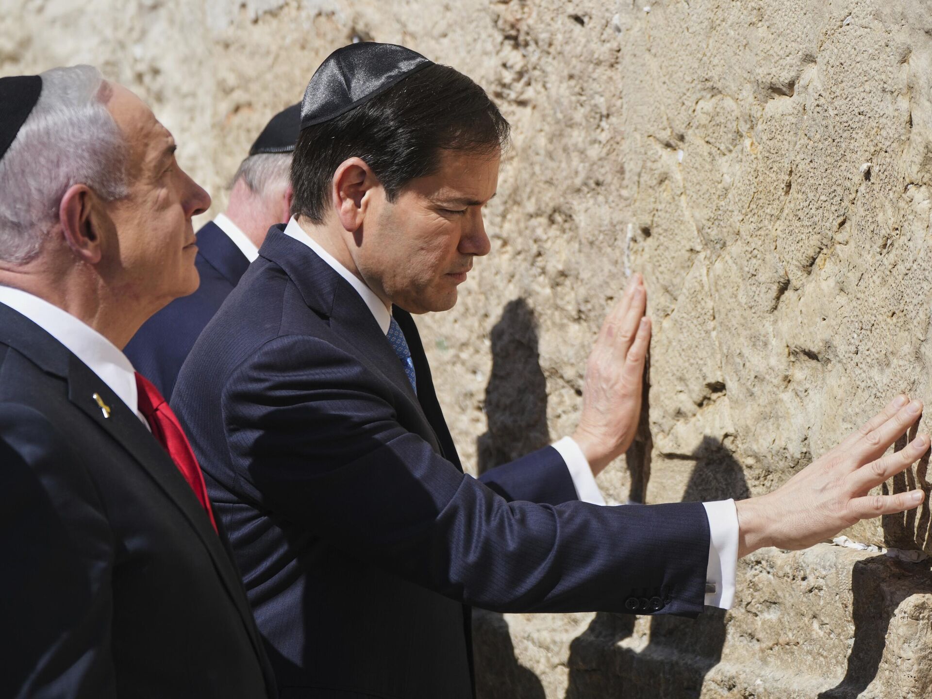 US Secretary of State Marco Rubio began his visit to Israel on Sunday by praying at the Western Wall with Prime Minister Benjamin Netanyahu and US Ambassador Mike Huckabee.